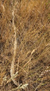 I stepped right over the top of a rattlesnake. Kimmie and I thought it was dead at first, that is until it took of at a very fast clip and we both screamed. I found this shed farther down the trail, so this is obviously snake territory.