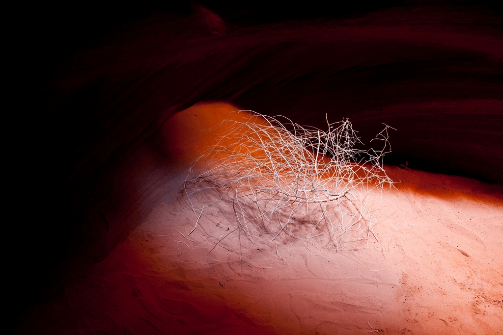Wednesday, November 16 – This tumbleweed was in a very dark corner of the canyon allowing just enough light in to give that nice red illumination to the rocks. Thank heavens no one came walking into the frame while it was exposing.
