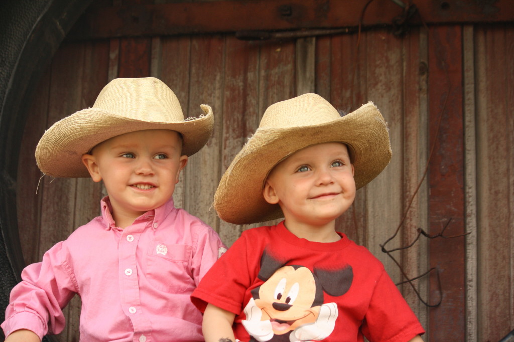 Wednesday, December 7 – I received Tiffany’s Christmas card in the mail today and thought this the perfect time to share a few pictures of her boys, my handsome grandsons.  Can you guess which one is the little stinker? As you can see, one is definately a cowboy, pink shirt and all. But the other little guy is all Micky. She sure has her hands full and it brings back so many memories of when my twins were that age. Thanks so much, Tiffany, for sharing the photos with me.