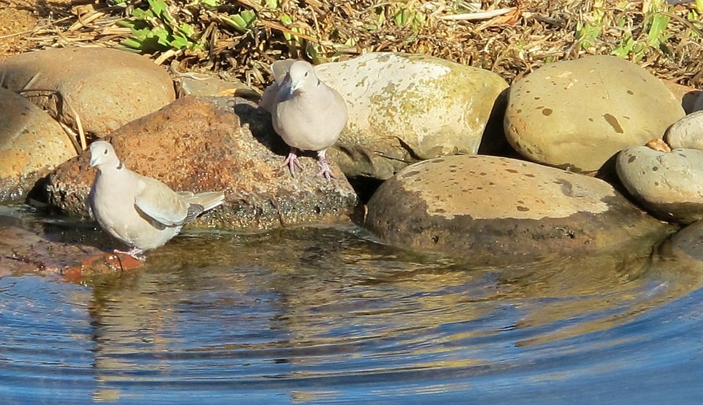 Saturday, February 4 – There are lots of doves that visit the pond every day for a nice cool drink of water. Here are a couple of the frequent visitors. This is a G12 shot.