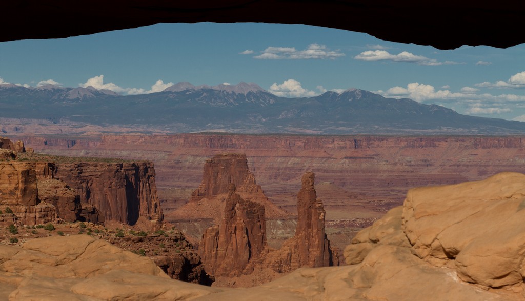 Tuesday, June 19 – Another shot showing the view through Mesa Arch. Not sure if I like it framed by the top of the arch or not, so I am including both shots.This was the final evening of the workshop and I sure would like to shoot this area at dawn too.
