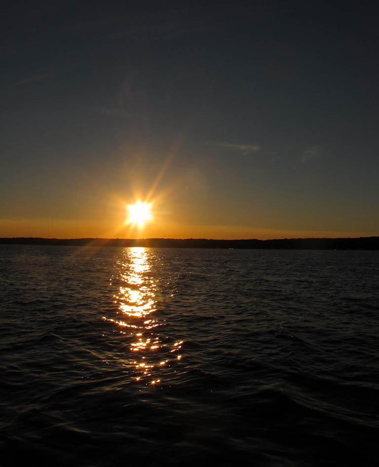 Thursday, July 12 – There is nothing like a setting sun to put the finishing touches on a perfect day of cruising Lake Geneva. When do you take a vertical shot? Right after you take a horizontal.