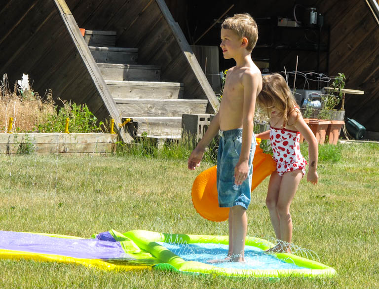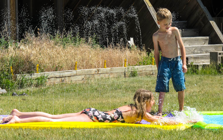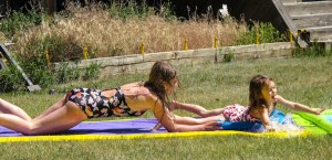 Wednesday, July 18 – Marilynn came to spend the day with her cousins and brought her brand new slip n slide along. What a great time they had. It has been hotter than Hades lately and the water fun was very welcomed. Lily had quite the time learning how to slide instead of run on the slip n slide.