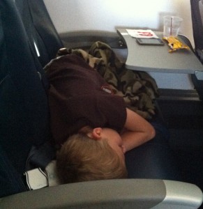 Thursday, July 26 – Here the kiddos are on our flight taking them back home. The airlines was so nice to us and let us have all the seats in the last row. We were right by the galley and bathroom. Made it really nice for them. As you can see sleep was not long coming. When you get up at 3:30am it makes it pretty conducive to shut ones eyes.