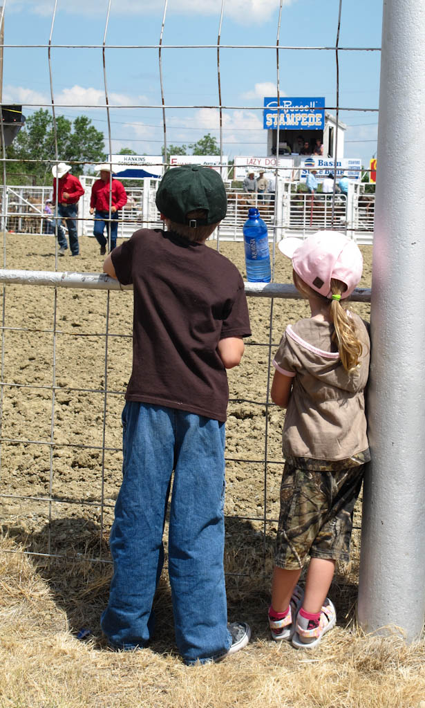 Thursday, August 30 – Here are some more shots from the Stanford rodeo. I think Bryton is informing Lily what it is all about in that bottom shot. Â This was her first rodeo, you know.