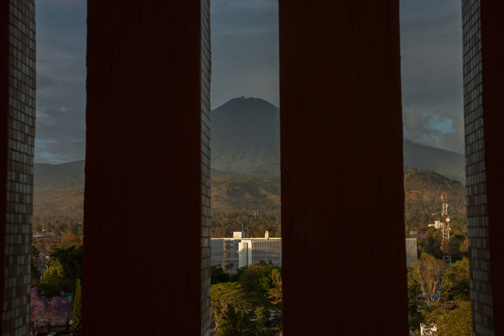 Saturday, October 13 – Â Here is a shot of Mount Meru which is right outside of Arusha. We visited Arusha National Park today and took photos of everything from baboons to giraffes and zebras.