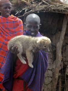 This is from the Masai village we had the honor of visiting and viewing a wedding ceremony. They raise goats and cattle and therefore, need herding dogs. The youngsters seem to be the main herders; taking the animals out in the morning for grazing and watering and returning again at night. I wondered how they could keep them safe here. Their cattle even honor the brush corrals. My rotten cows would take one look and be long gone. Â That is the hut one of the families lives in right behind.