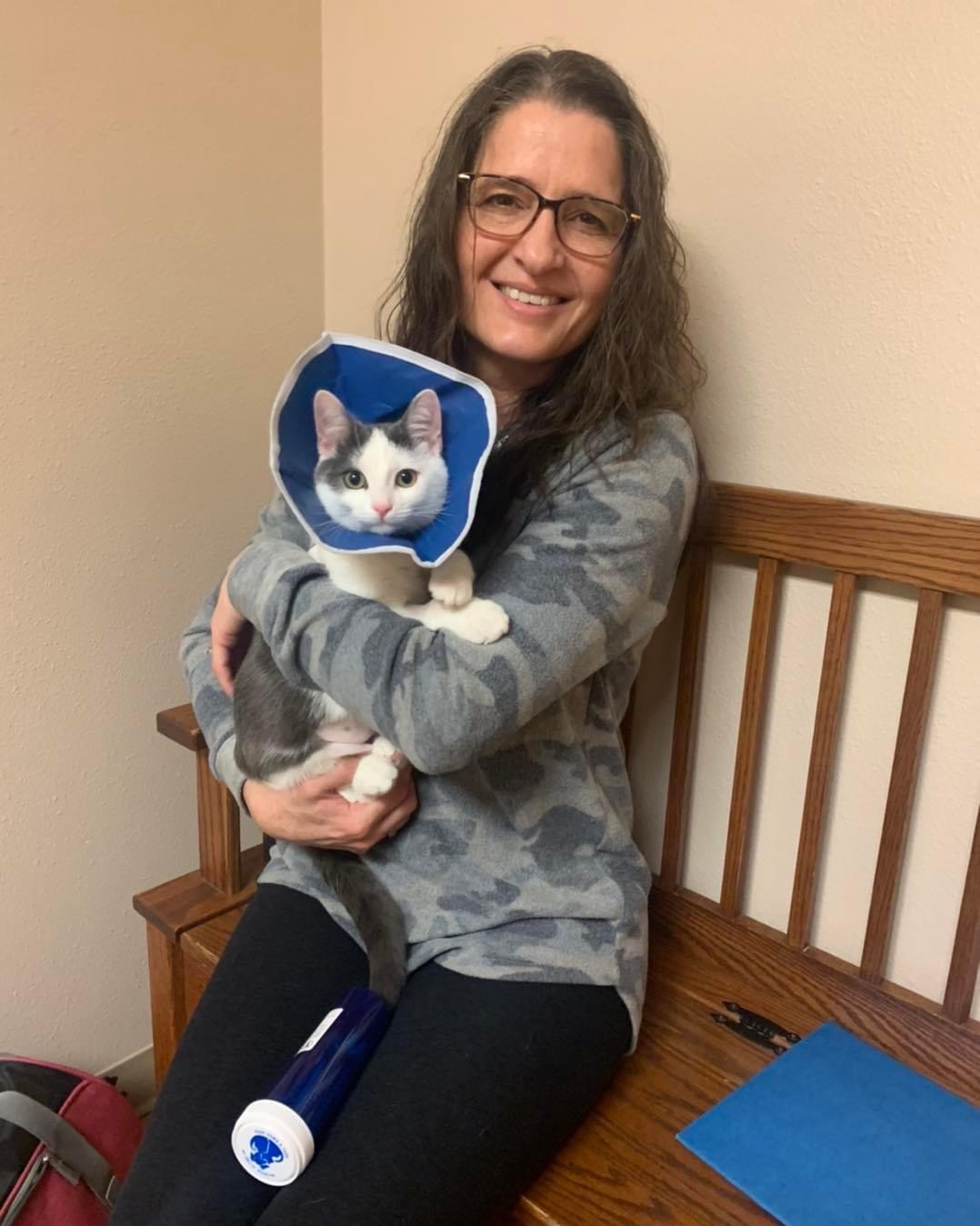 My daughter adopted her second kitty that has a broken leg yesterday. Her first one had a spiral fracture that has a rod and pins with an unknown incident that caused it. This little sweetie has pins also and was attacked by a dog. These are such sweet babies and are so lucky to have such an angel to save them. PetPawSee is an awesome group that saves these sweet kitties.